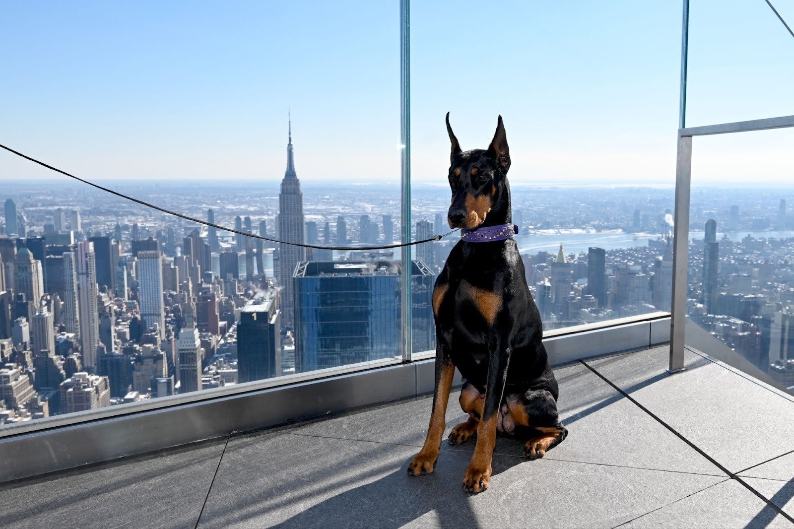 Penny the Doberman Pinscher basks in the glow of victory at a Hudson Yards luncheon. (Bryan Bedder/Getty Images)